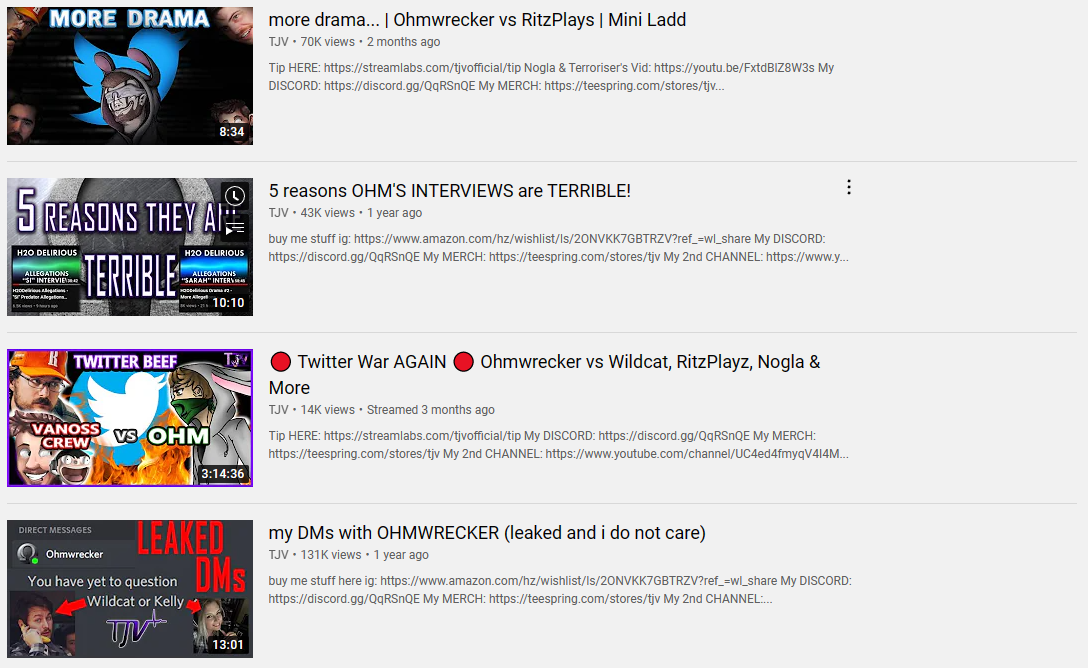You would think it would be the end of Ohm's reputation and that he would stop bringing up the drama but apparently, he's still digging himself into his own little grave. TJV kept on uploading more and more evidence as to why Ohm's a piece of human shit. Also going so far as to insult him because of the leaked Discord messages. I guess it also broke the relationship, I'm not entirely sure on that one.